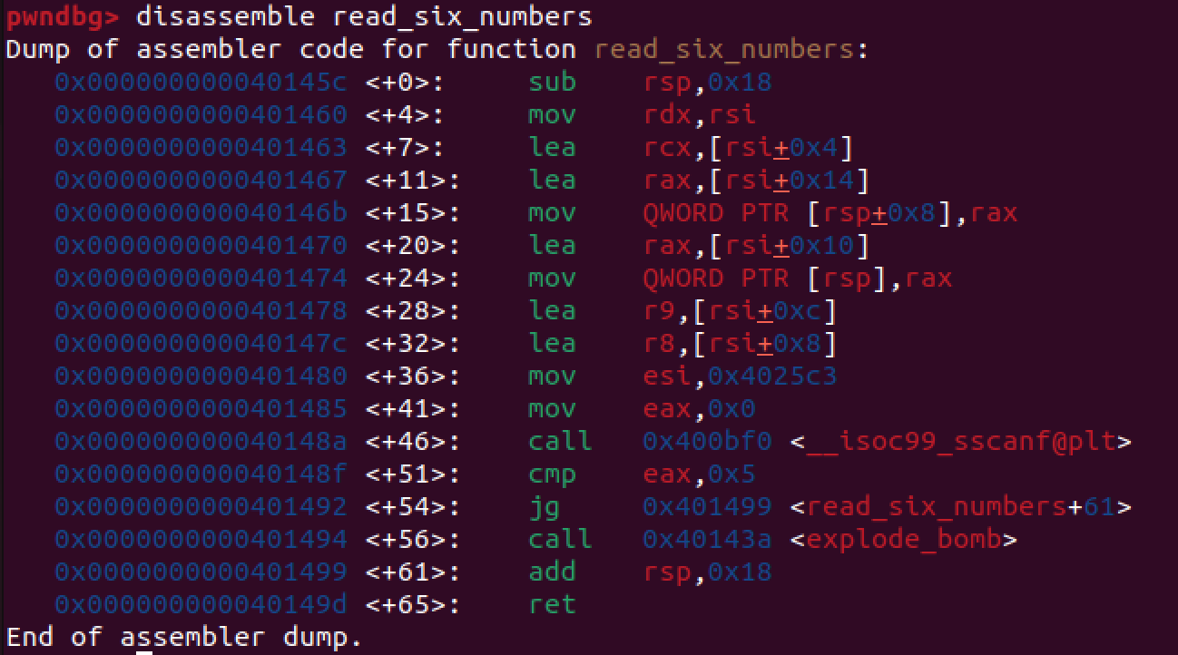 read_six_numbers 함수를 실행한 직후 rsp에 있는 값에 대해 연산을 수행하므로 이 부분을 염두에 두자.
