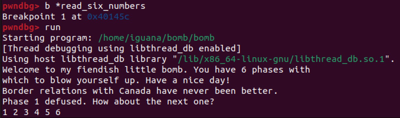먼저 b *read_six_numbers로 bp를 걸었다.