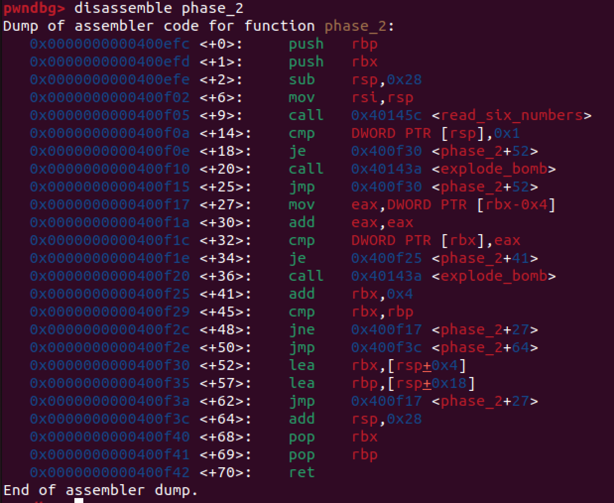 다시 disassemble phase_2 하여 정적분석을 한다.