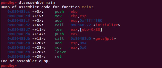 <+11>에서 [ebp-0x80]의 주소를 eax가 가리키게 하고 있다.