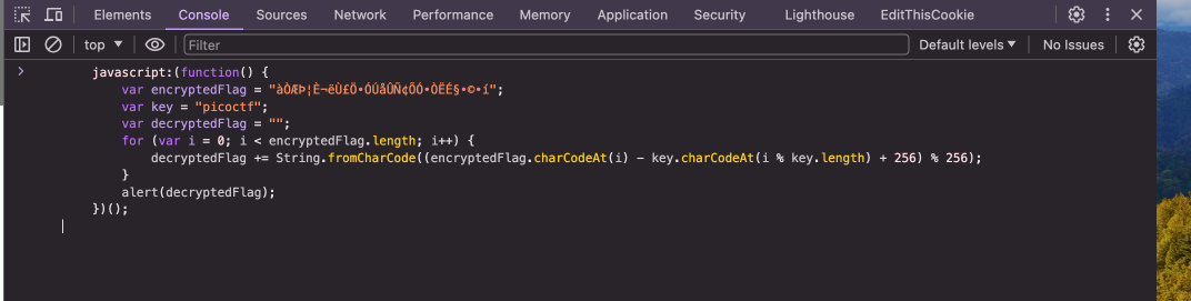 decryptedFlag += String.fromCharCode((encryptedFlag.charCodeAt(i) - key.charCodeAt(i % key.length) + 256) % 256);