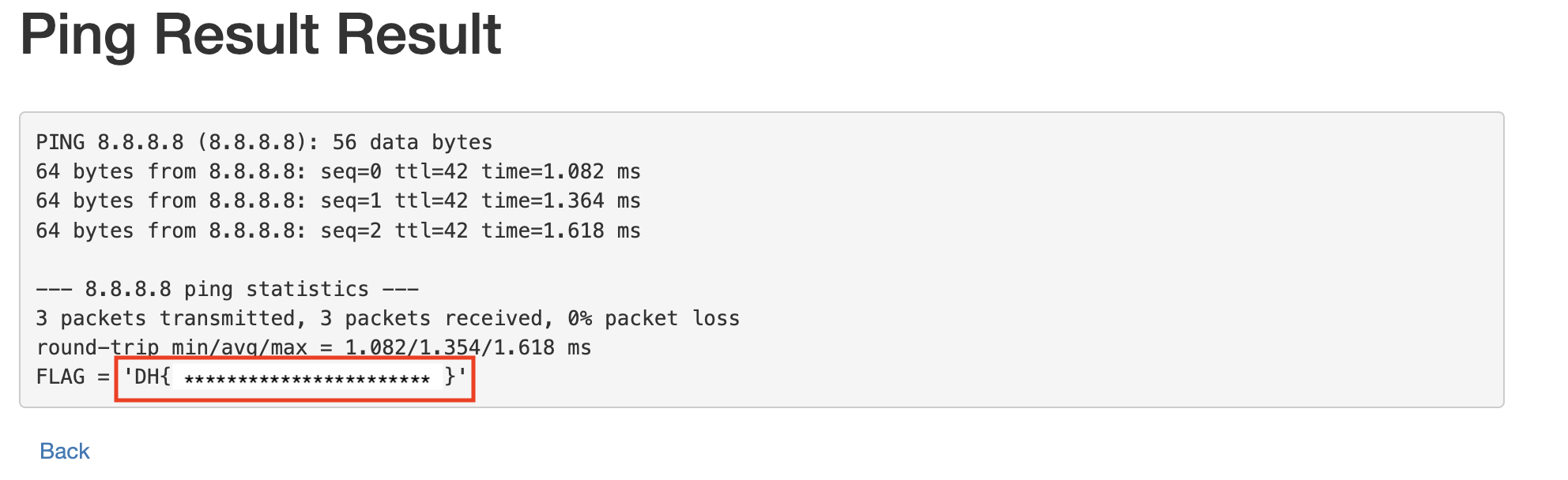 코드를 확인해보면 인덱스 페이지와 ping 페이지 두 개의 페이지가 있는 것을 확인할 수 있다. 두 페이지 중 ping 페이지가 더 중요해보인다. 특히 POST 메소드로 요청을 받았을 때 host 값을 받고 해당 host로 ping을 보내는 명령어를 셸에서 실행한다. 이 부분에서 공격자는 command injection 공격을 시도할 수 있다.
