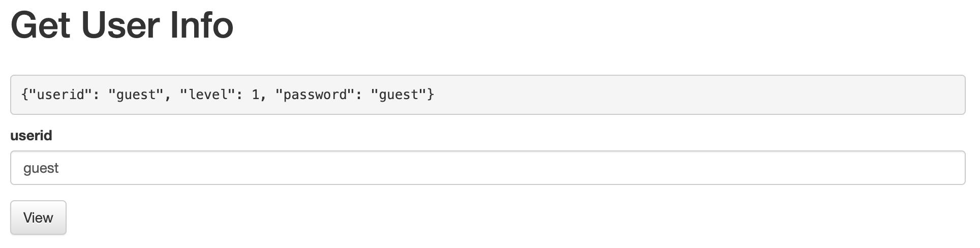 Get User Info를 클릭해서 접속했던 /get info 엔드포인트에 대한 코드를 살펴보면, 이용자가 입력값을 입력했을 때 입력한 값을 POST요청으로 받아서 api/user/(입력값)의 경로로 값을 보내는 것을 확인할 수 있다.