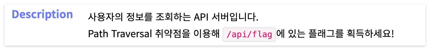 Request 내용에서 userid값이 0으로 되어있는 것을 확인할 수 있는데, 이것은 앞서 코드에서 살펴본 계정 정보(users) 딕셔너리에서 guest의 키가 0으로 되어 있는 것이 출력된 것이다. 이 부분에서 path traversal 공격을 할 것이다. userid의 값은 api/user/(입력값) 형태로 경로가 형성되는데, 우리가 얻고자 하는 flag는 api/flag 경로에서 리턴받을 수 있다. 따라서 입력값을 ../flag로 하여 api/user/../flag로 경로가 형성되도록 하면 api/flag로 이동할 수 있다.