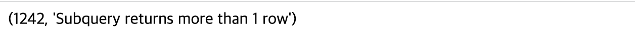 서브쿼리가 1줄 이상 리턴된다는 에러 메시지가 뜬다.