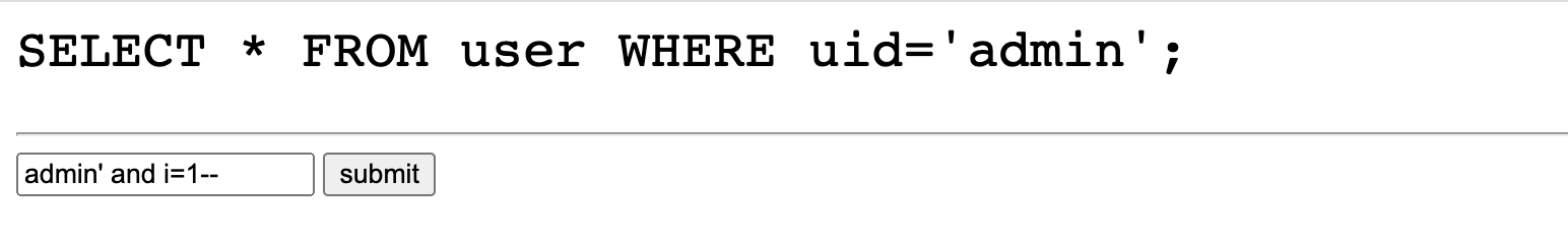 에러를 발생시키기 위해 admin' and i=1-- 이라는 값을 입력해보았다.