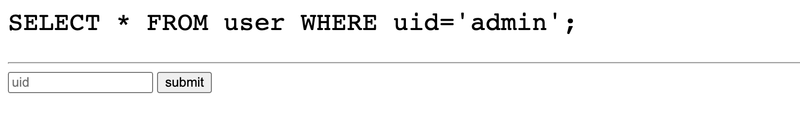 admind을 입력해서 전송해보니 완성된 쿼리문이 뜬다. 쿼리 실행 결과에 대해서는 출력되는 내용이 없다.
