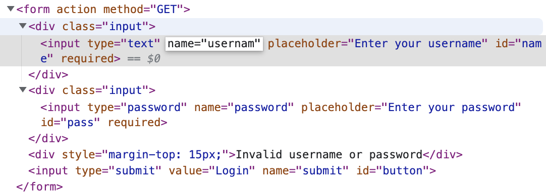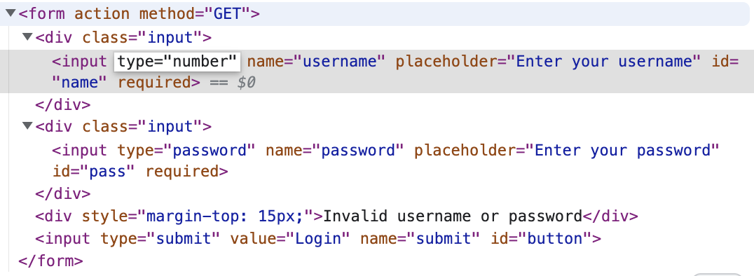 input 태그의 name 속성의 값 username에서 끝에 e를 지워 usernam으로 보내보았다.