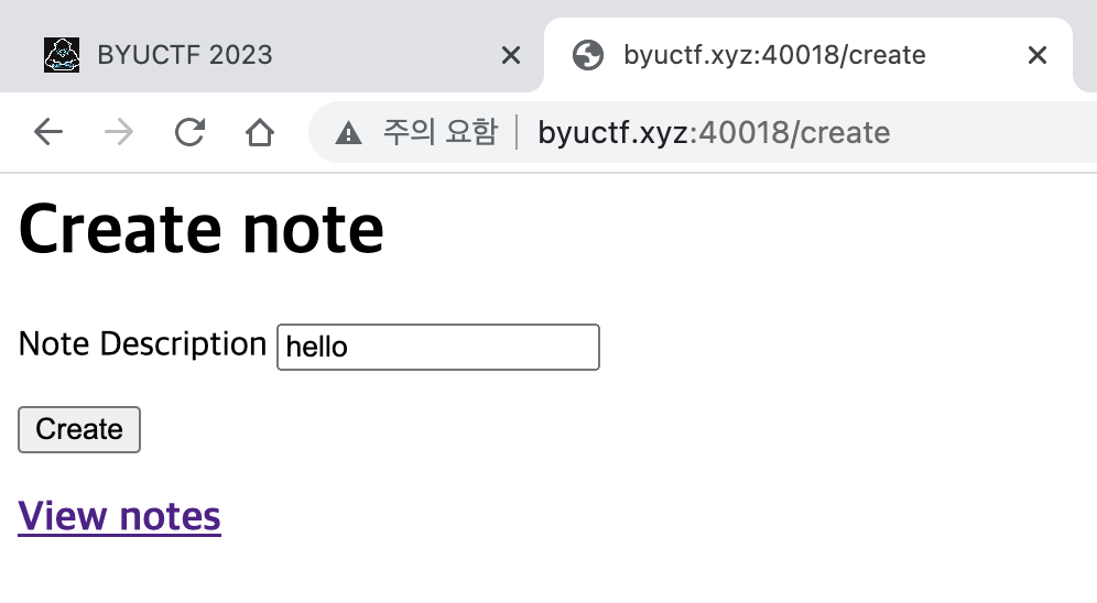 그 다음으로는 create note 링크로 들어가보았다.