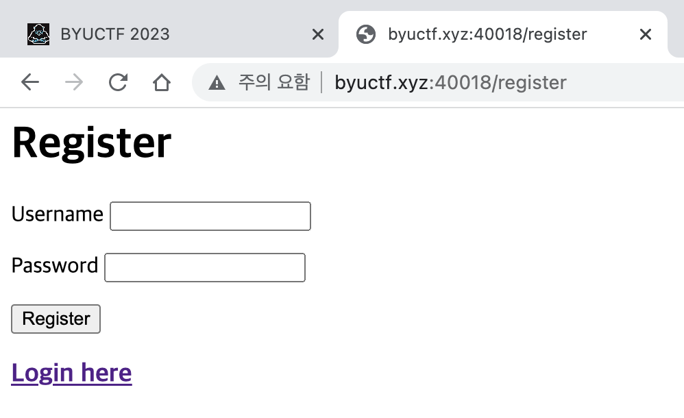 Register here 링크를 클릭하여 Register 페이지에도 방문해보았다.