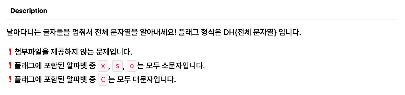 문제 사이트에 접속해보았다. 작은 문자들이 날아다니는 것을 볼 수 있다.