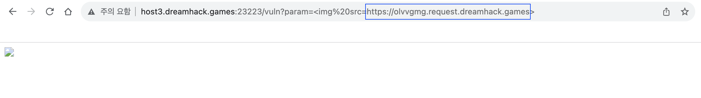 받은 링크를 복사해서 vuln 페이지의 param 파라미터에 전달하는 img 태그의 src 값에 붙여넣은 뒤 요청을 보낸다.