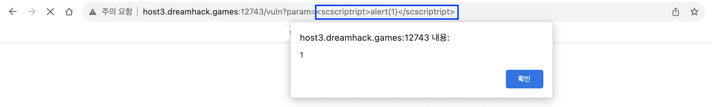 script 대신 scscriptript로 바꿔 페이로드를 보내보니 xss 공격이 먹힌다.