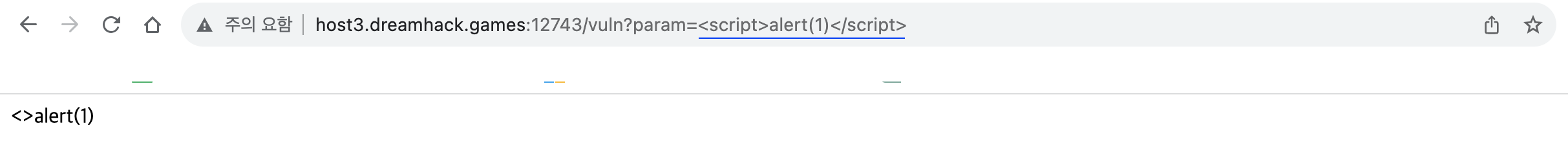 xss 문제니까 일단 가장 단순한 형태의 xss 페이로드를 보내본다.