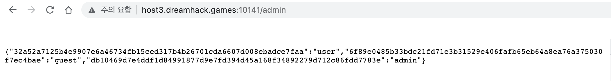 admin 페이지에서 모든 사용자의 session id를 볼 수 있다. 이 중에서 admin계정의 session id을 쿠키에 저장하면 admin 계정으로 로그인될 것이다.