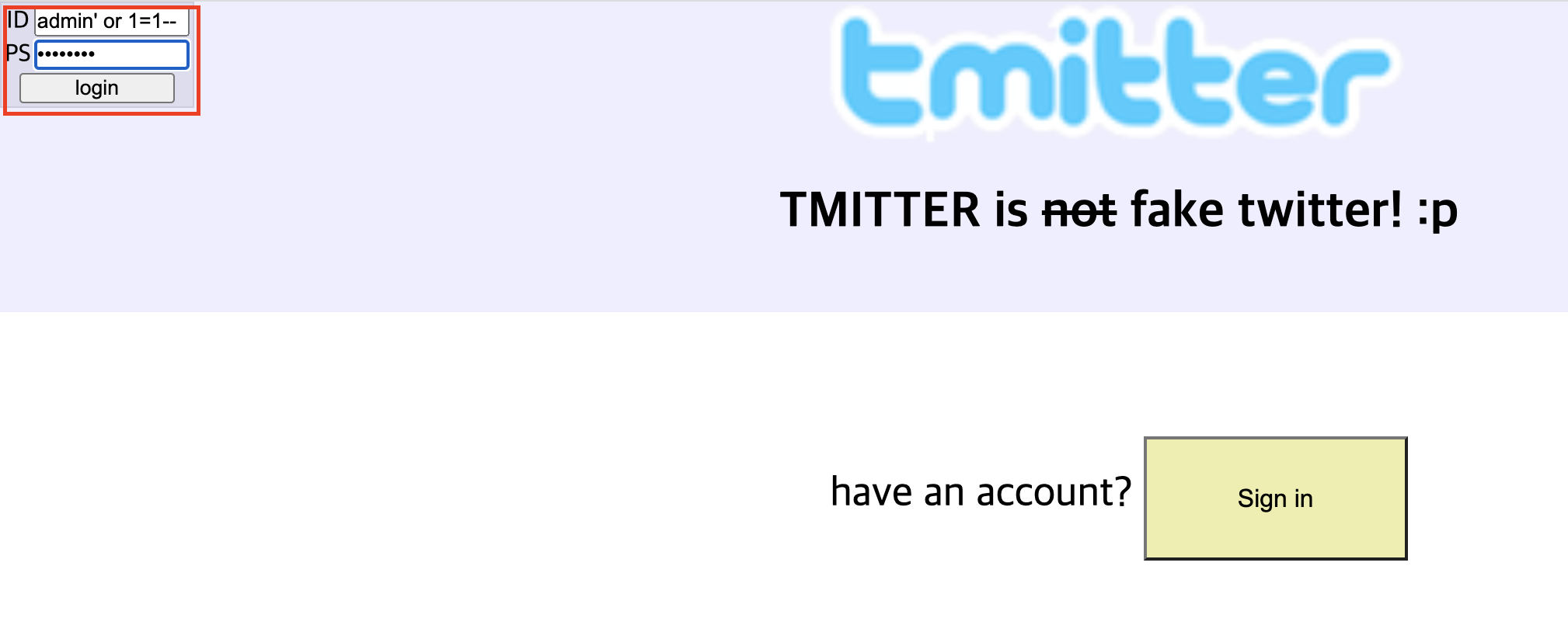 id에 admin' or 1=1-- 를 입력하고
