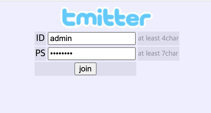 id에 admin을 입력해서 Sign Up을 시도하면