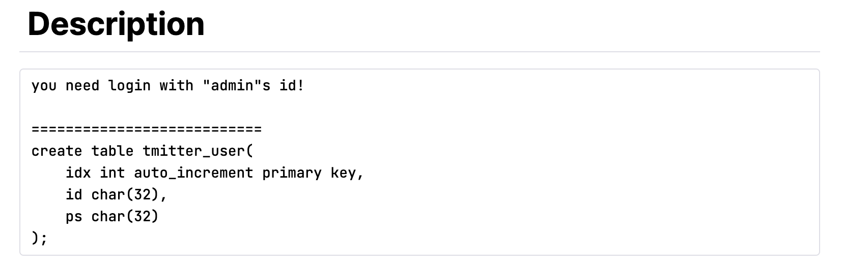 id값에 admin 뒤에 충분한 공백을 넣고 그 뒤에 임의의 값을 넣었기 때문에