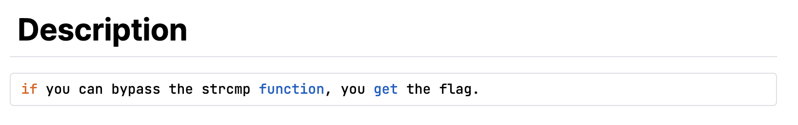 문제에서도 말하고 있는 것처럼 strcmp 함수를 우회하는 방법으로 풀어야 한다.