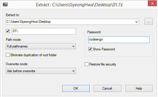 password는 문제에 써있는 codeengn을 입력하면 된다.