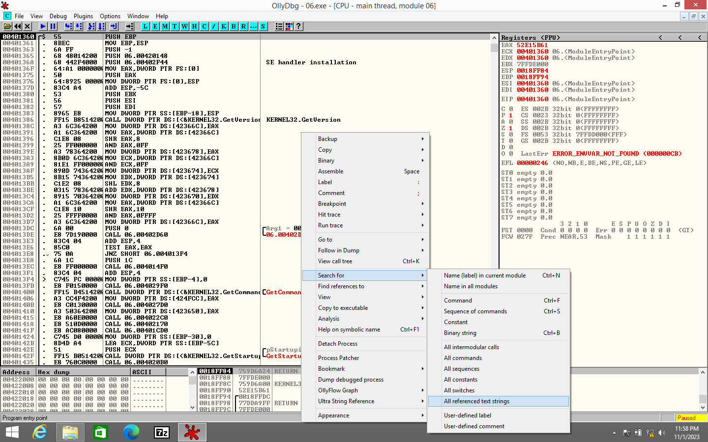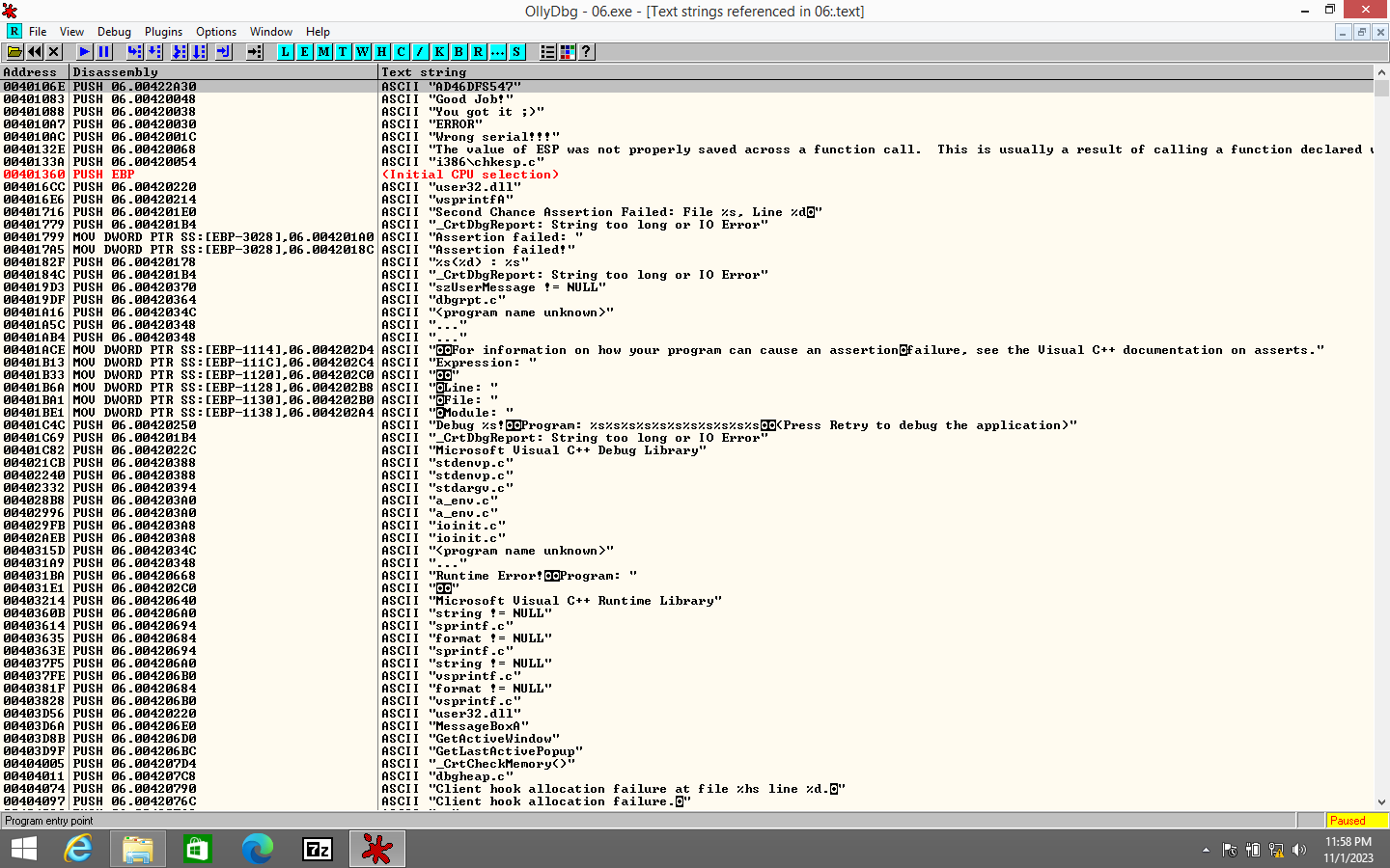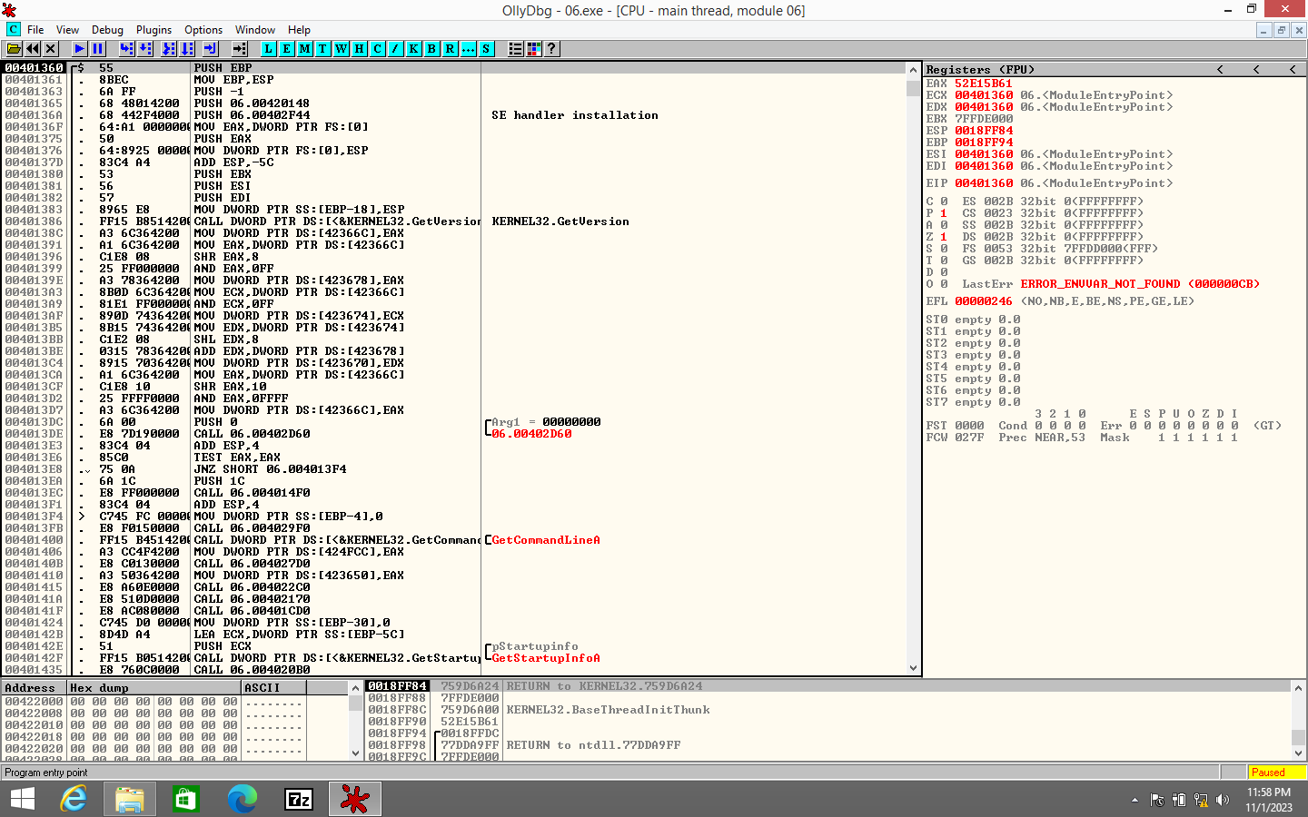 이제 본격적인 리버싱을 하기 위해서 06.exe를 디버거로 뜯어볼 것이다.