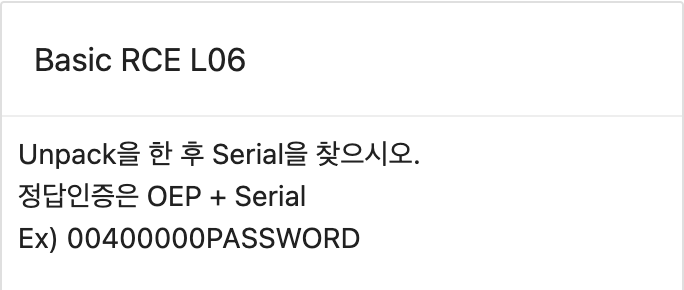 문제에서 정답인증은 OEP + Serial 형식으로 하라고 했다.