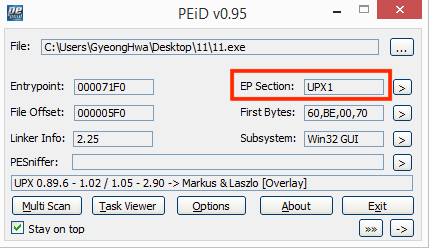 UPX로 패킹되어 있다.