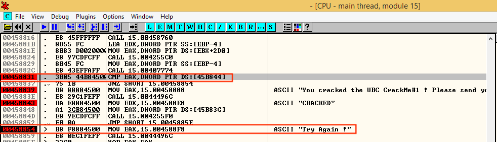 성공/오류메시지 근처에 분기하는 CMP문이 있을 확률이 높은데, 해당 CMP 문에서 serial을 명시하고 있을 가능성이 높다.