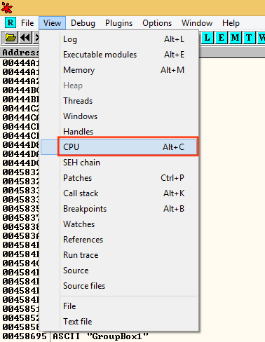 이전의 화면으로 돌아가기 위해 다시 상단 메뉴바에서 View > CPU 를 클릭한다.