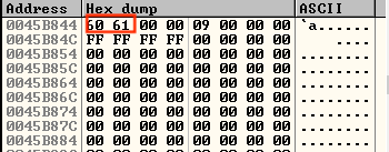 화면 하단의 Hex dump 부분이 45B844 부분의 주소를 보여준다.