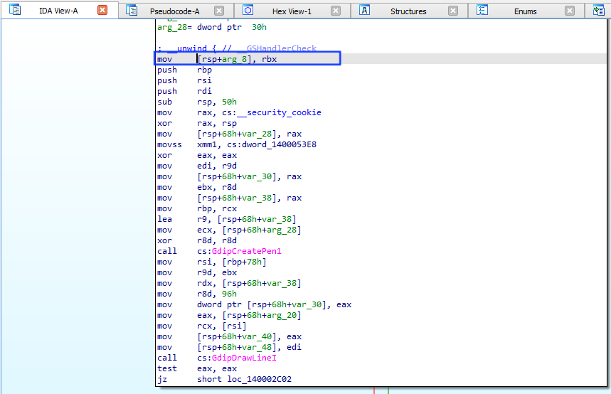 함수의 기능을 살펴보기 위해 breakpoint(F2)를 걸고 F9로 실행해본다.