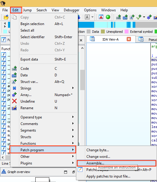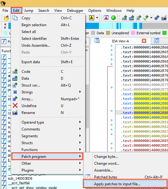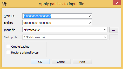 Edit > Patch program > Apply patches to input file... 을 클릭한다.