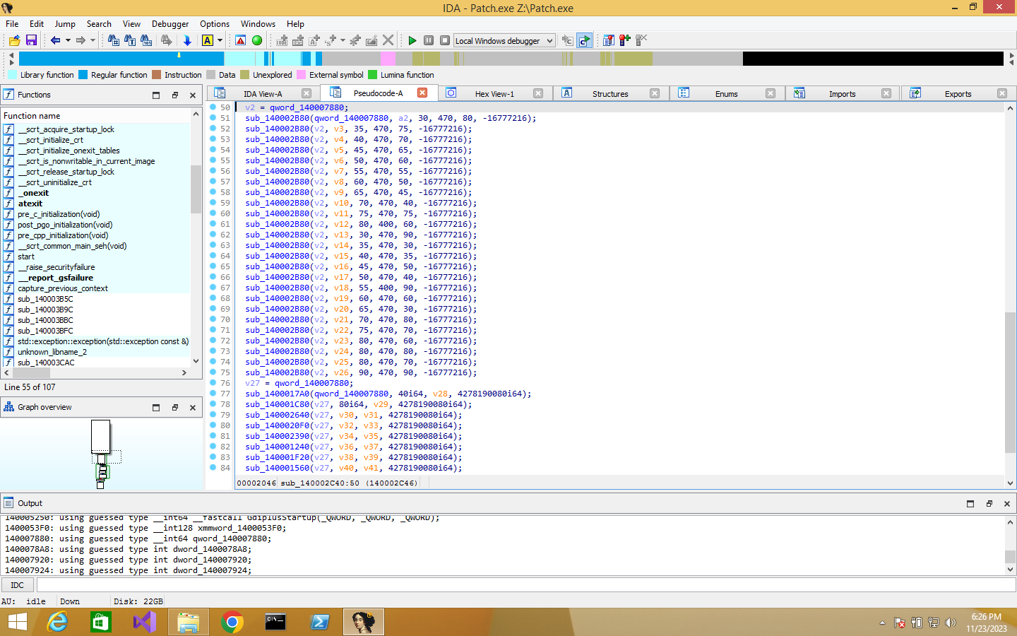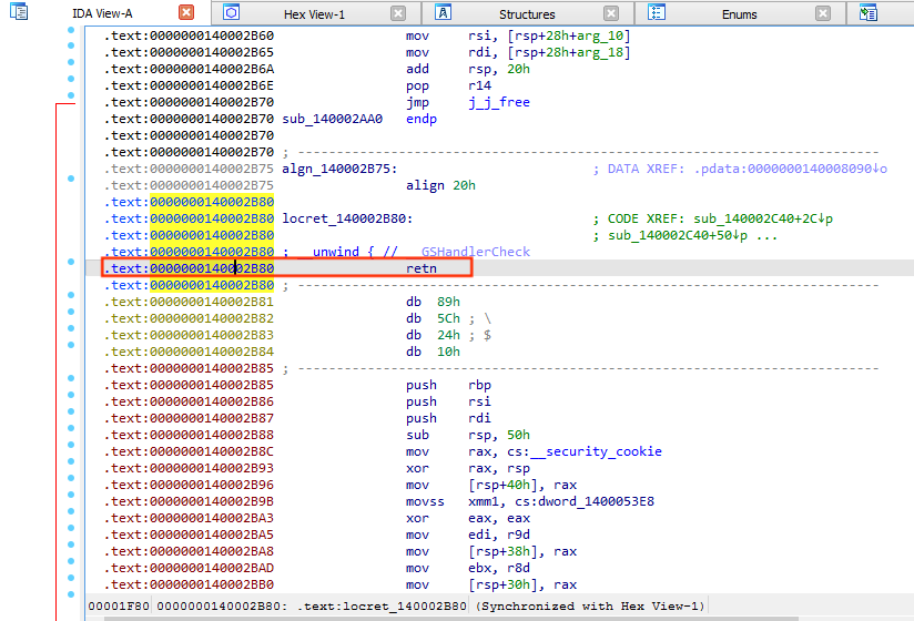 단축키 g를 누른 후 140002B80을 입력하여 어셈블리 코드 상에섯 sub_140002B80 함수를 찾는다.