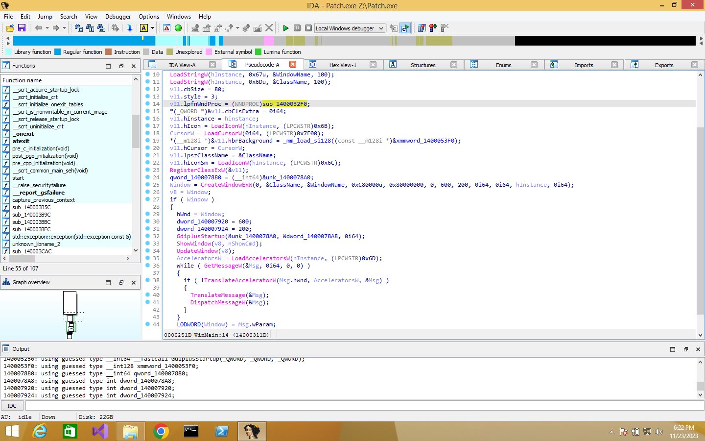 patch문제는 WinAPI를 이용해 만든 프로그램이기 때문에 WinMain 함수를 찾아야 한다.