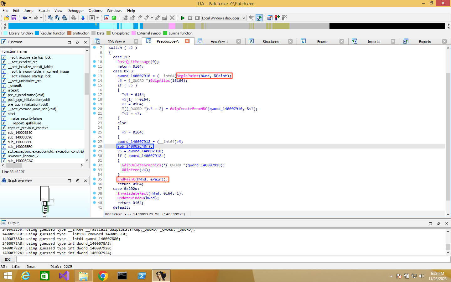 BeginPaint() 함수와 EndPaint() 함수를 찾을 수 있다.