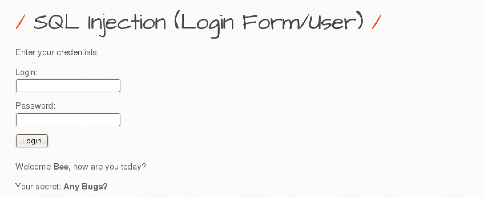 비밀번호를 새롭게 evil로 변경하였으므로 로그인 페이지에서 로그인할 때 기존의 비밀번호인 'bug'를 입력하면 로그인에 실패하고, 새 비밀번호인 'evil'을 입력하면 로그인에 성공한다.