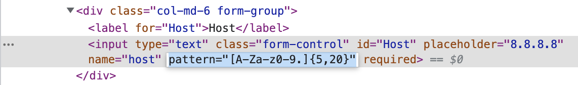 경고문이 뜨지 않게 해서 입력값을 전송하기 위해 개발자 도구(F12)에 들어가서 어떤 방해요소가 있는지 확인해보았다. 개발자 도구의 Elements 메뉴로 들어가서 html 코드를 확인해보니 입력값에 대해 pattern이 지정되어 있는 것을 발견할 수 있었다. 해당 내용을 삭제하니 경고문이 뜨지 않고 입력값이 성공적으로 전송되었다.