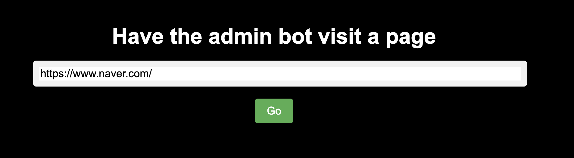 'admin bot이 페이지를 방문하게 하라'는 문구와 함께 입력창이 뜨는 것을 볼 수 있다.