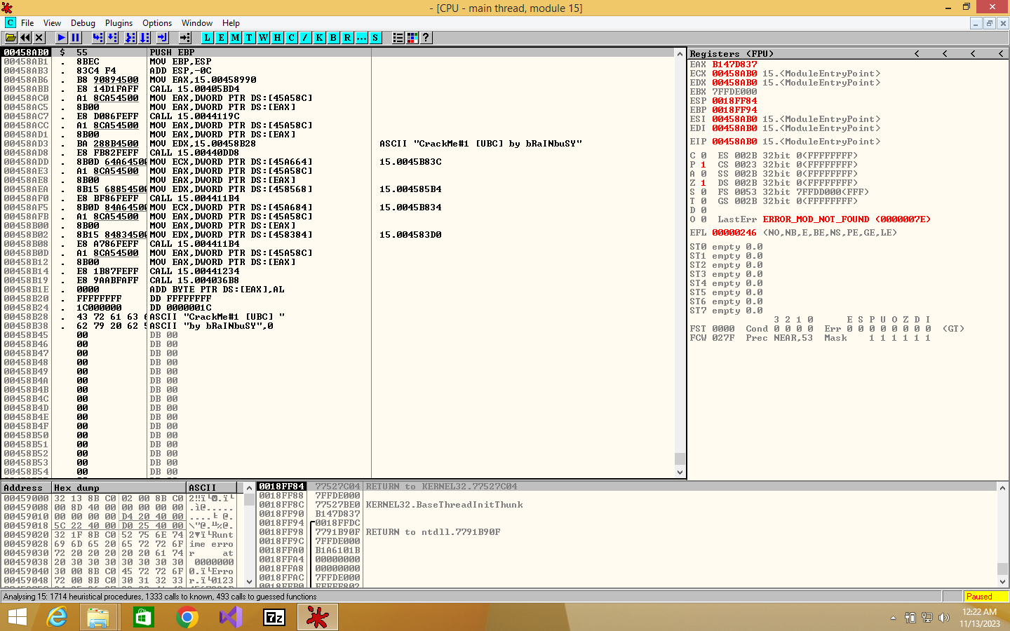 본격적으로 리버싱을 하기 위해 디버거로 15.exe열어본다.