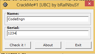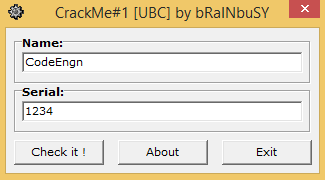 문제에 따라 Name에 CodeEngn을 입력하고 Serial은 임의의 값으로 채운다.