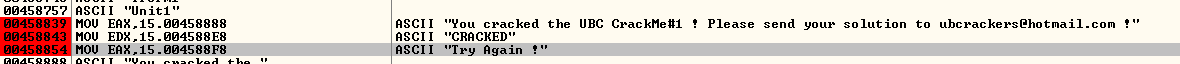 성공/오류메시지의 위치를 찾기 위해 CPU 창에서 우클릭, Search for > All referenced text strings 를 클릭한다.