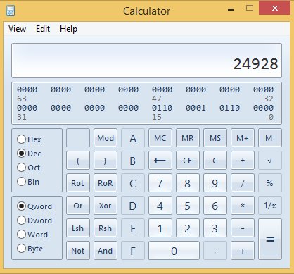 Dec로 변환하면 24928이라는 결과값이 나온다.