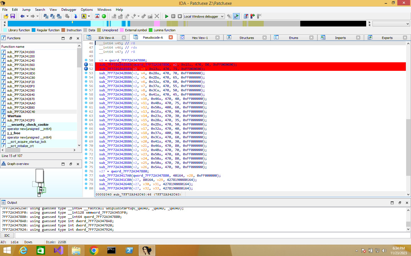 함수의 기능을 살펴보기 위해 breakpoint(F2)를 걸고 F9로 실행해본다.
