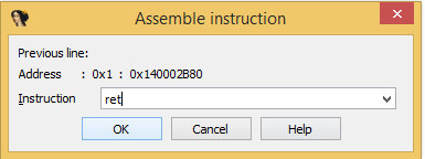 코드 상에 140002B80부분이 retn으로 수정된 것을 확인할 수 있다.